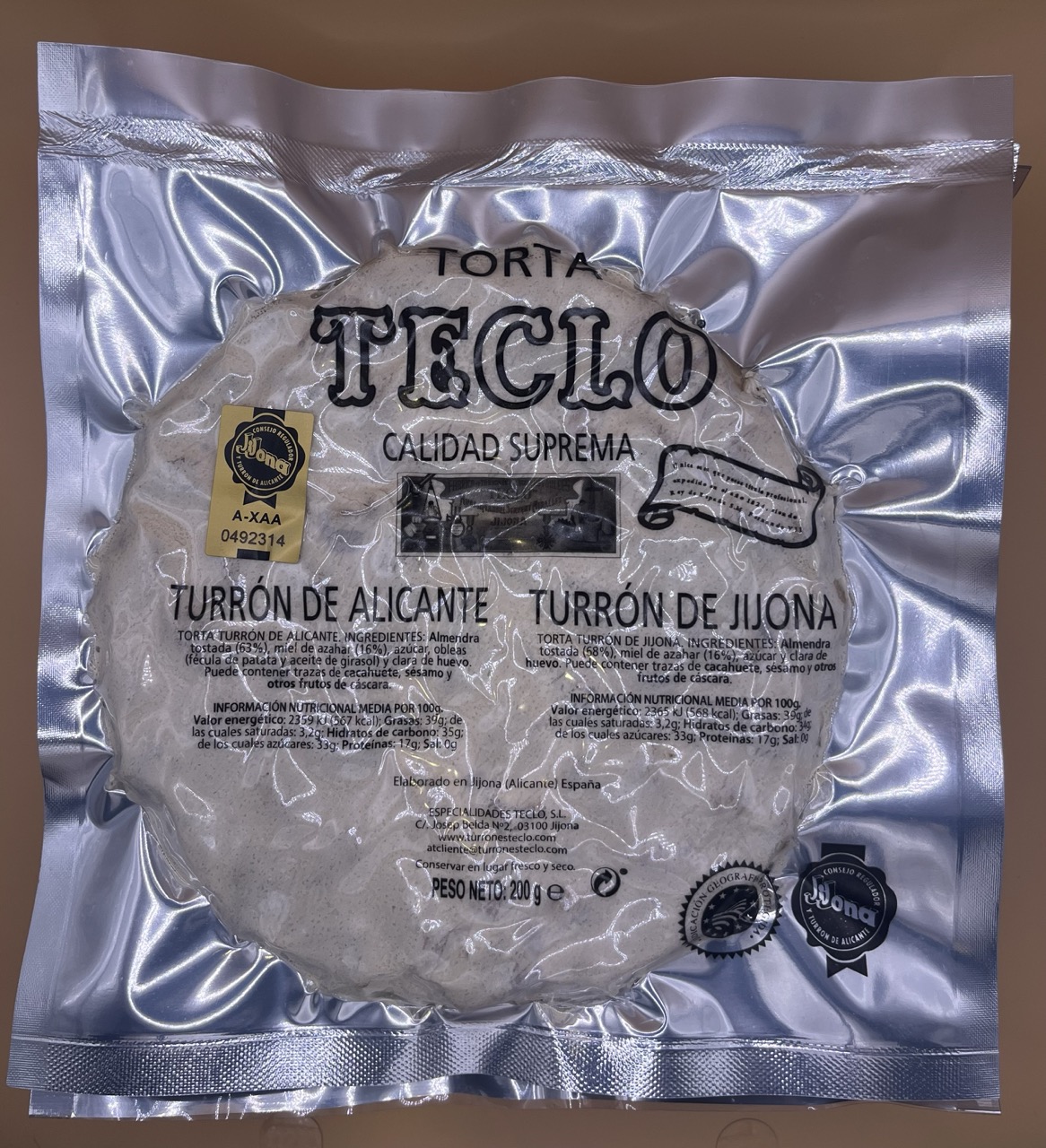 Torta de turrón de Alicante Teclo. 200 gramos